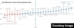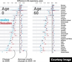 Отдельно, из-за того, что данные вышли позже, было проведено исследование относительно России, где падение ожидаемой продолжительности жизни составило более полутора лет, уступая только США и Литве.